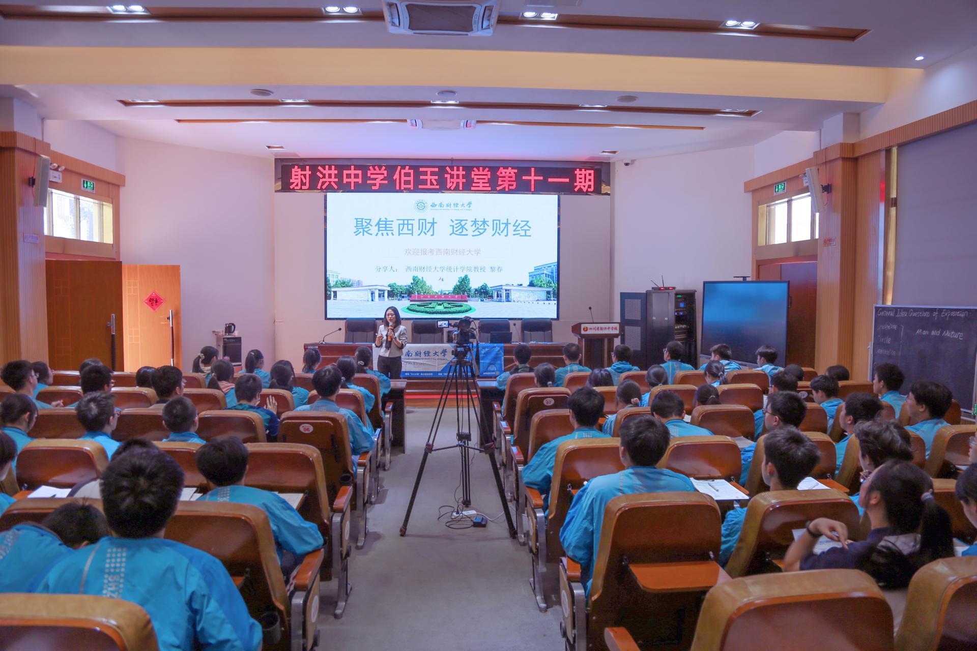 为进一步提升生源质量,更好推进学校与重点中学交流合作,培养高中学子学习财经专业知识的兴趣,加强考生对永利集团3044欢迎光临全面、准确的了解。3月29日,学院招生工作小组前往射洪中学,通过双线混合、网络直播的方式,面向线上线下5000余名高中部师生,开展“财经素养教育”讲座。