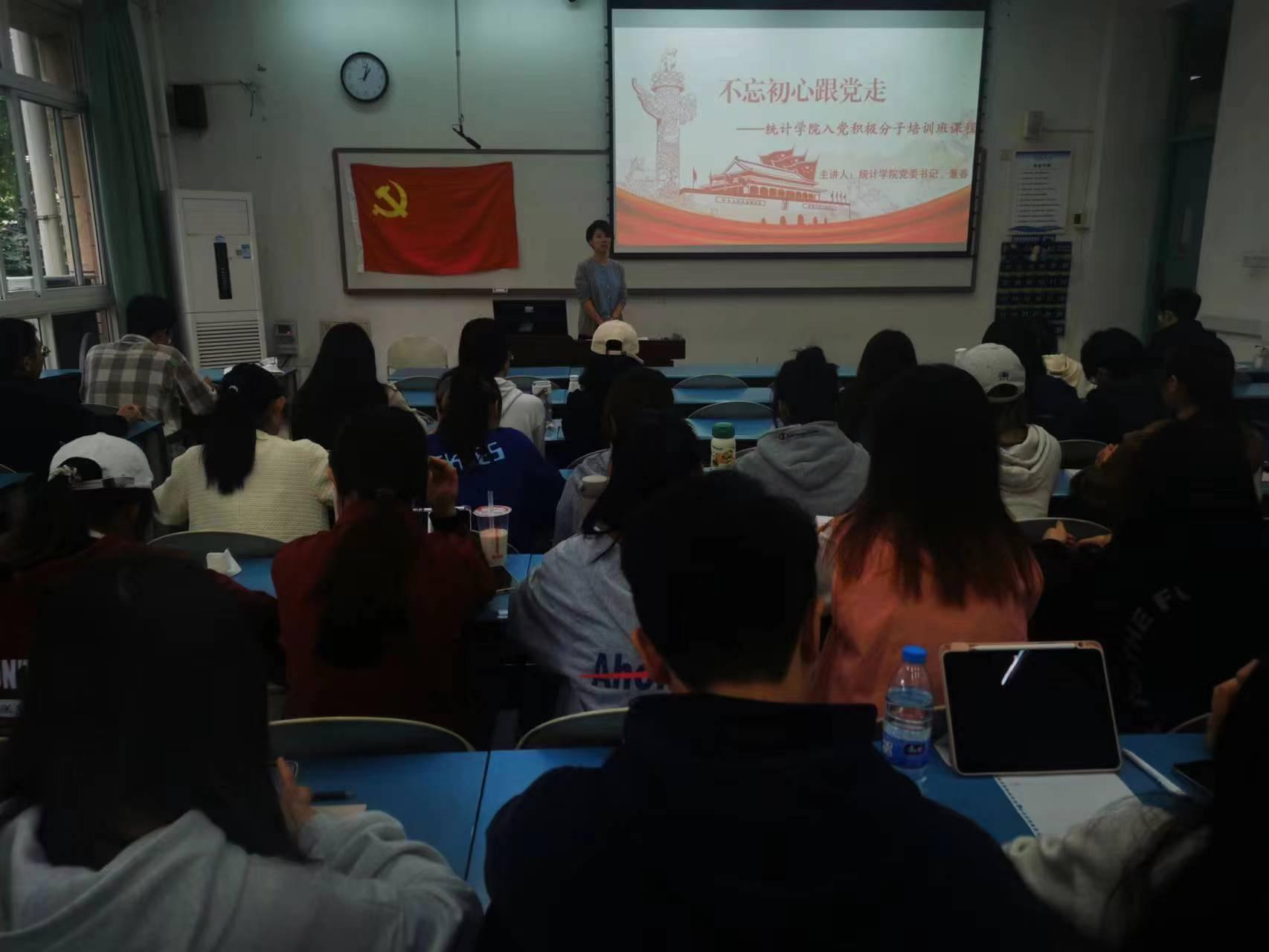 本次培训课程的主题为“不忘初心跟党走”。首先,董春从不同的历史阶段的青年所承担的时代使命出发,讲述了当代大学生的时代使命。董春表示:加入中国共产党是当代大学生的最佳政治选择,选择入党即是选择光荣更是选择责任,当代大学生应该有理想、敢担当、肯吃苦、能奋斗,为实现中国梦作出贡献。之后,入党积极分子学习了《中国共产党的章程》,明确了二十大对党章修改的内容。新党章是我党与时俱进理论品格的鲜明体现。最后,董春向入党积极分子讲解了党的组织制度和组织结构。