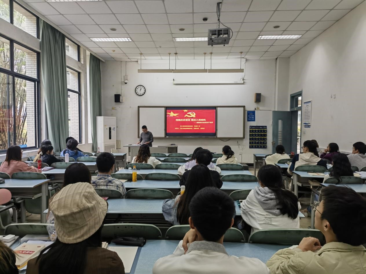 首先,邹先云为大家带来主题为“明确历史使命,端正入党动机----做新时代优秀共产党员”的党课,他从“为什么要加入中国共产党”、“明确历史使命”、“端正入党动机”、“积极践行初心使命、锤炼党性修养”等四个方面展开,并号召全体学员要不断端正入党动机,坚定入党决心,树立远大共产主义理想,时刻保持青年一代的责任与担当。