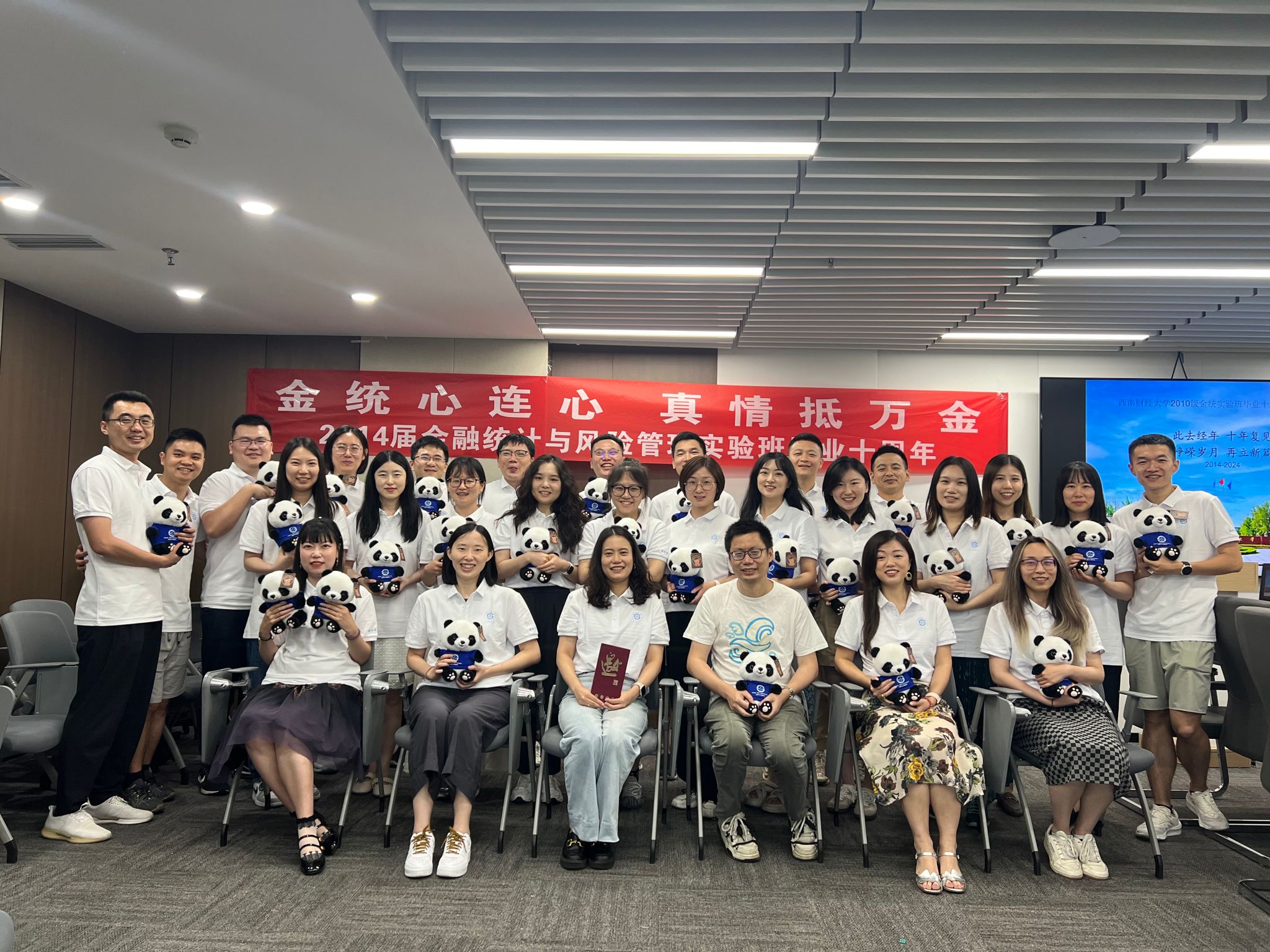时光荏苒,岁月如梭。2024年6月8日,西财校园内洋溢着温馨与欢乐的氛围,3044am永利集团官网2014届金融统计与风险管理实验班(“金统”)校友齐聚一堂,举行毕业十周年纪念返校活动。近30位校友从五湖四海归来,共同谱写了一段深厚的同窗情谊。3044am永利集团官网李伊老师、辅导员甘筑夏老师亲临现场,与校友们共度这一难忘时光。