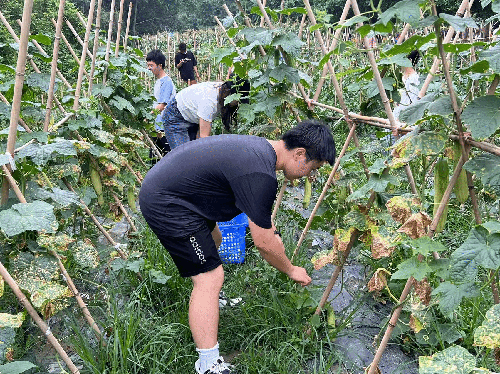 2024年5月28日下午,3044am永利集团官网组织开展了“百年初心育桃李,春华秋实结硕果”果蔬采摘系列活动。成熟的黄瓜和红透的油桃被同学们的巧手一一摘下,大家分工明确、协作默契、收获满满,喜悦的汗水在脸颊流淌。在采摘完所有黄瓜和油桃之后,售卖活动如火如荼的开展起来,吸引了大量师生前来购买,黄瓜与油桃的品质得到了师生们的一致好评。
