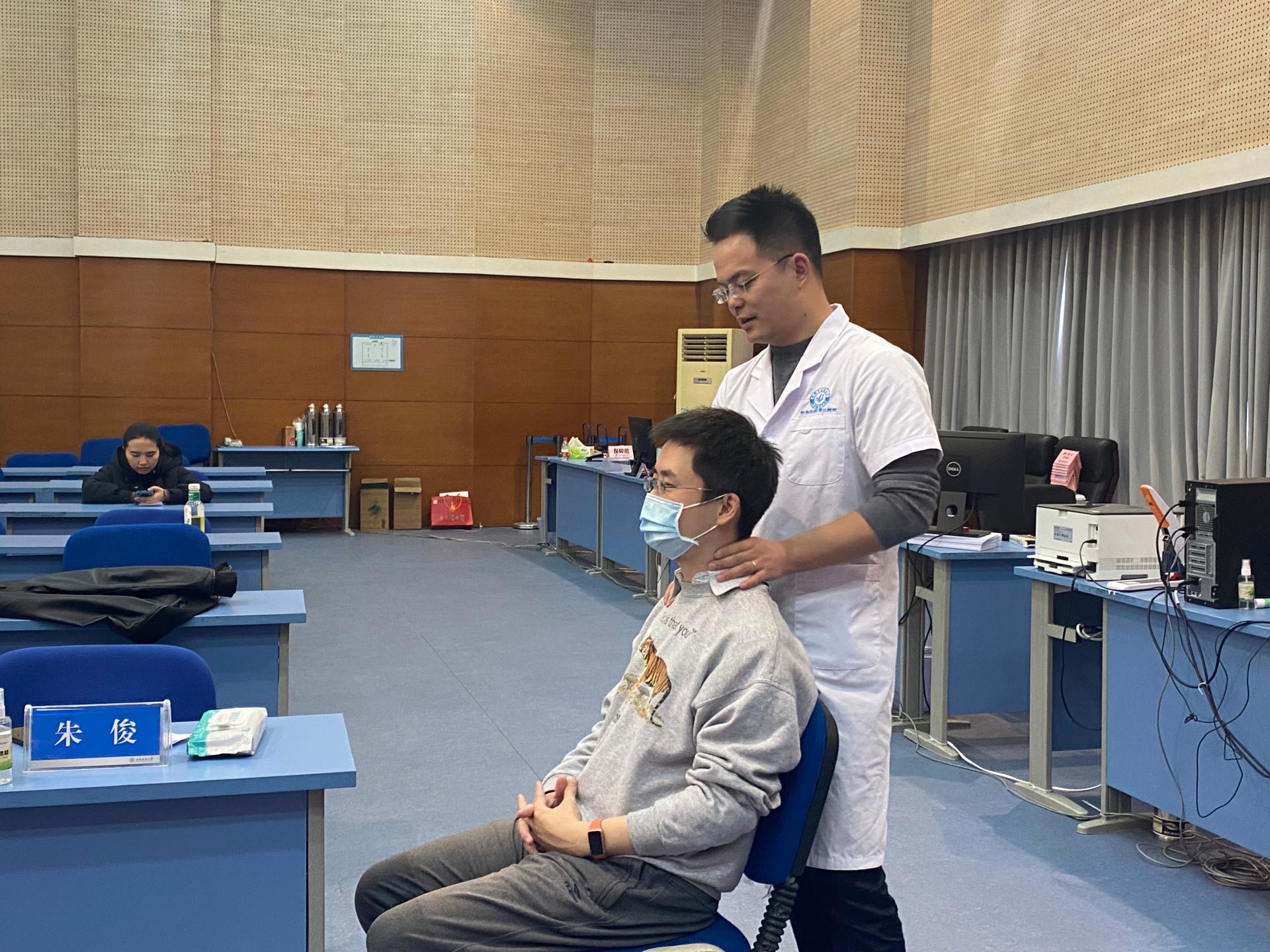 为深入开展党史学习教育,进一步推进“我为群众办实事”实践活动,促进教职工身心健康提升计划的实施,2021年12月9日,3044am永利集团官网与公共管理学院联合邀请了来自成都中医药大学针灸推拿学院的周思远和朱俊两位专家为全校教师开展进校诊疗服务。20多位来自不同学院的老师按照各自预约的时间来到学生活动中心多功能厅,根据自身需求分别到针灸或推拿的两位专家处问诊。