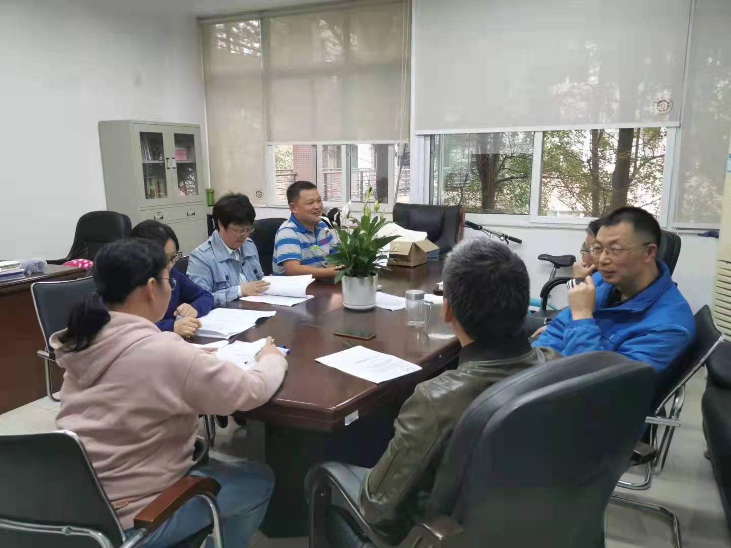 10月12日,管理科学系全体教师在通博楼B215办公室集中深入学习和研讨《习近平新时代中国特色社会主义思想进课程教材指南》文件。