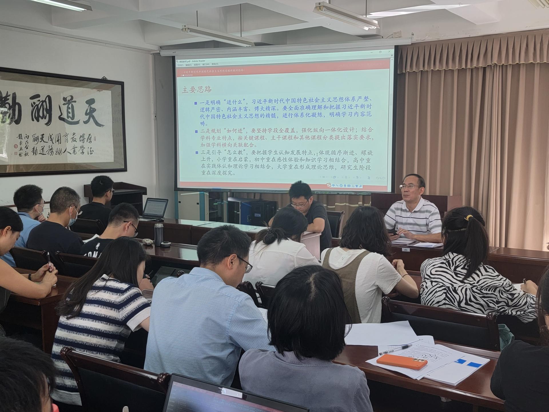 郭院长带领大家,一起研讨、学习了该文件的起草背景和重大意义、习近平新时代中国特色社会主义思想进课程教材的主要思路、进课程教材的主要内容、如何体现学段的差异性和进阶性、如何安排不同专业的课程等主要内容。