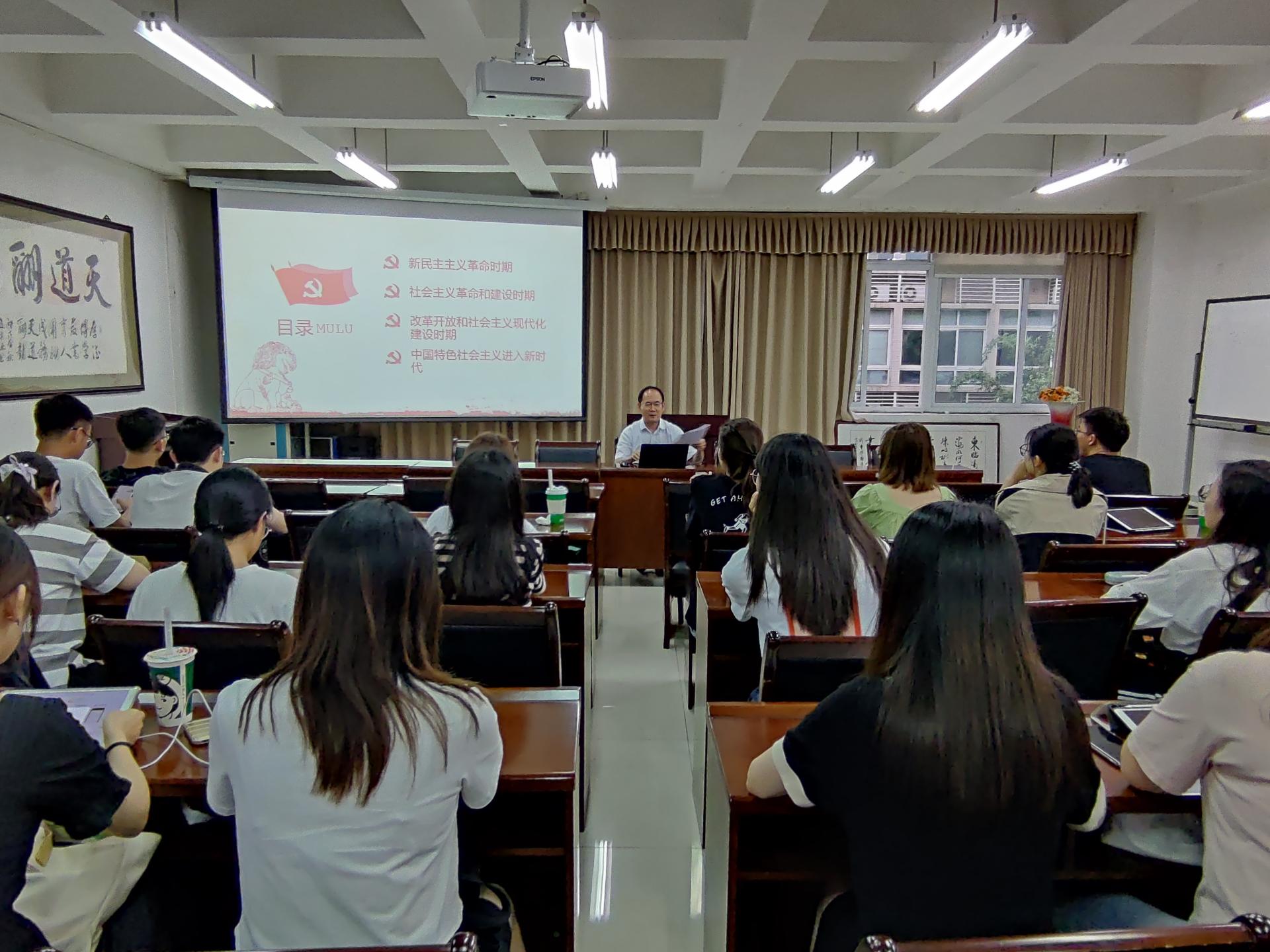 郭建军院长以“光辉的历程”为题,沿着“新民主主义革命时期”、“社会主义革命和建设时期”、“改革开放和社会主义现代化建设时期”、“中国特色社会主义进入新时代”党的历史发展脉络,旁征博引、深入浅出,带领同学们一起回顾党的100年奋斗历程。郭建军院长还结合学院、学科发展实际,深刻阐明百年未有之大变局下统计学科面临的机遇和挑战。