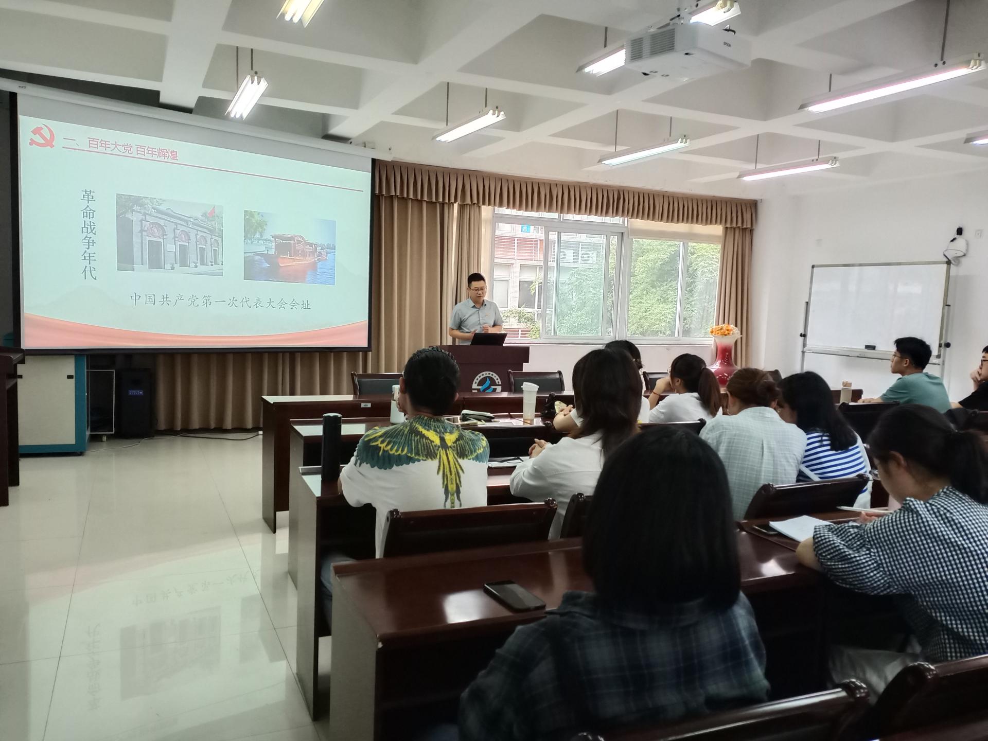 2021年6月8日,3044am永利集团官网分党委书记黄海波在通博楼B212会议室为本科2019级统计学的学生讲授以“传承红色基因,争作时代新人”为主题的思政课。