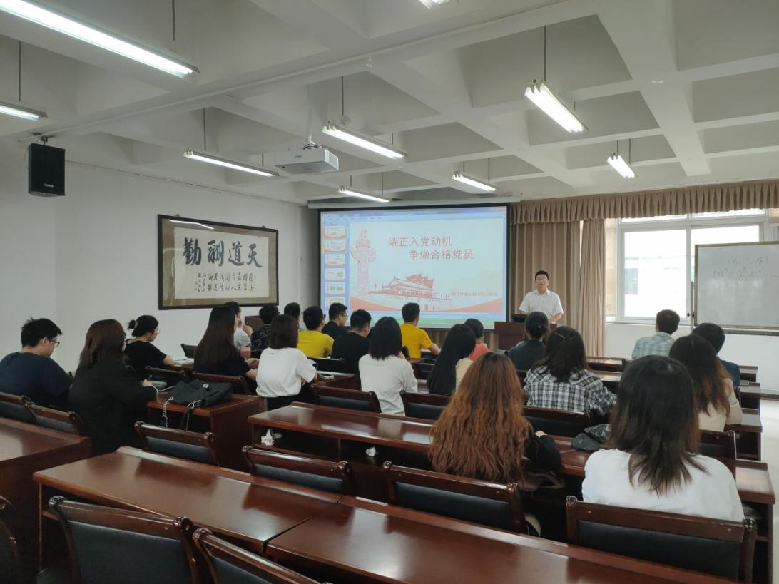 首先,黄海波书记以“明确党史,端正入党动机”为主题向学员开展党课学习。他从历史的维度向同学们阐述共产党人的历史使命和责任是如何肩负的,是如何带领中国人民将我们的国家慢慢走向繁荣富强,并向学员们提出“中国共产党为什么能?”“马克思主义为什么行?”“中国特色社会主义制度为什么好?”这三个问题。接着他告诉学员们一定要端正自己的入党动机,要时刻跟党走,学习先进思想,并把这当作终身任务,同时强调了加入中国共产党是当代大学生最重要的政治选择。黄书记告诉学员们要以实际行动争取早日入党,以实践行动向党组织靠拢,培养锻炼自己服务人民的意识和能力。