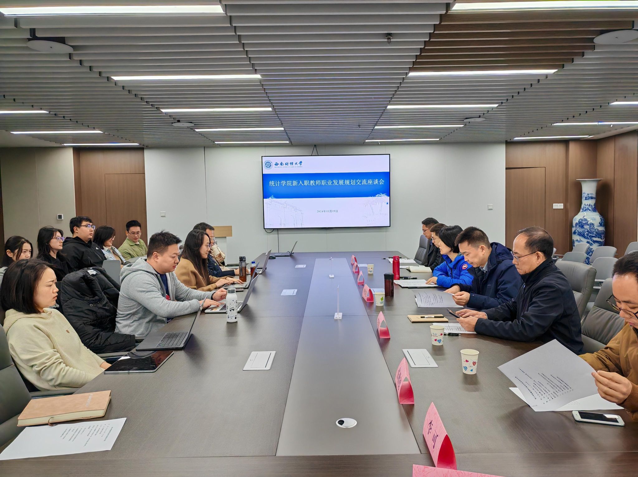 院长郭建军指出,青年教师要立足学校双一流建设和学科发展,潜心钻研,提升自己的教学本领和学术能力,学院也将尽全力为大家的职业发展保驾护航。党委书记董春谈到,青年教师一定要站稳讲台,肩负教书育人使命,学术研究要做到“顶天立地”,瞄准国家发展战略急需的问题,为社会服务发出西财声音。党委教师工作部部长叶作亮表示,青年教师要重视职业发展规划,将自身发展与学院、学校发展交互融合,校准目标,找到实现路径,为学校新财经战略升级发展发光发热。