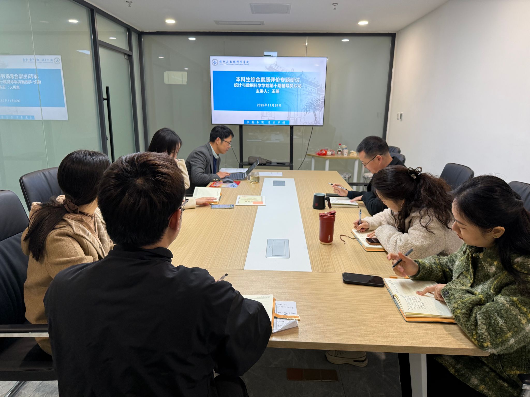 为持续完善本科生综合素质评价体系,提升辅导员队伍在学生综合评价工作中的专业化水平,11月24日上午,统计与数据科学学院在诚正楼1439会议室举办以“本科生综合素质测评专题研讨”为主题的第十期辅导员工作沙龙,学院党委副书记和全体辅导员参加了此次沙龙活动。
