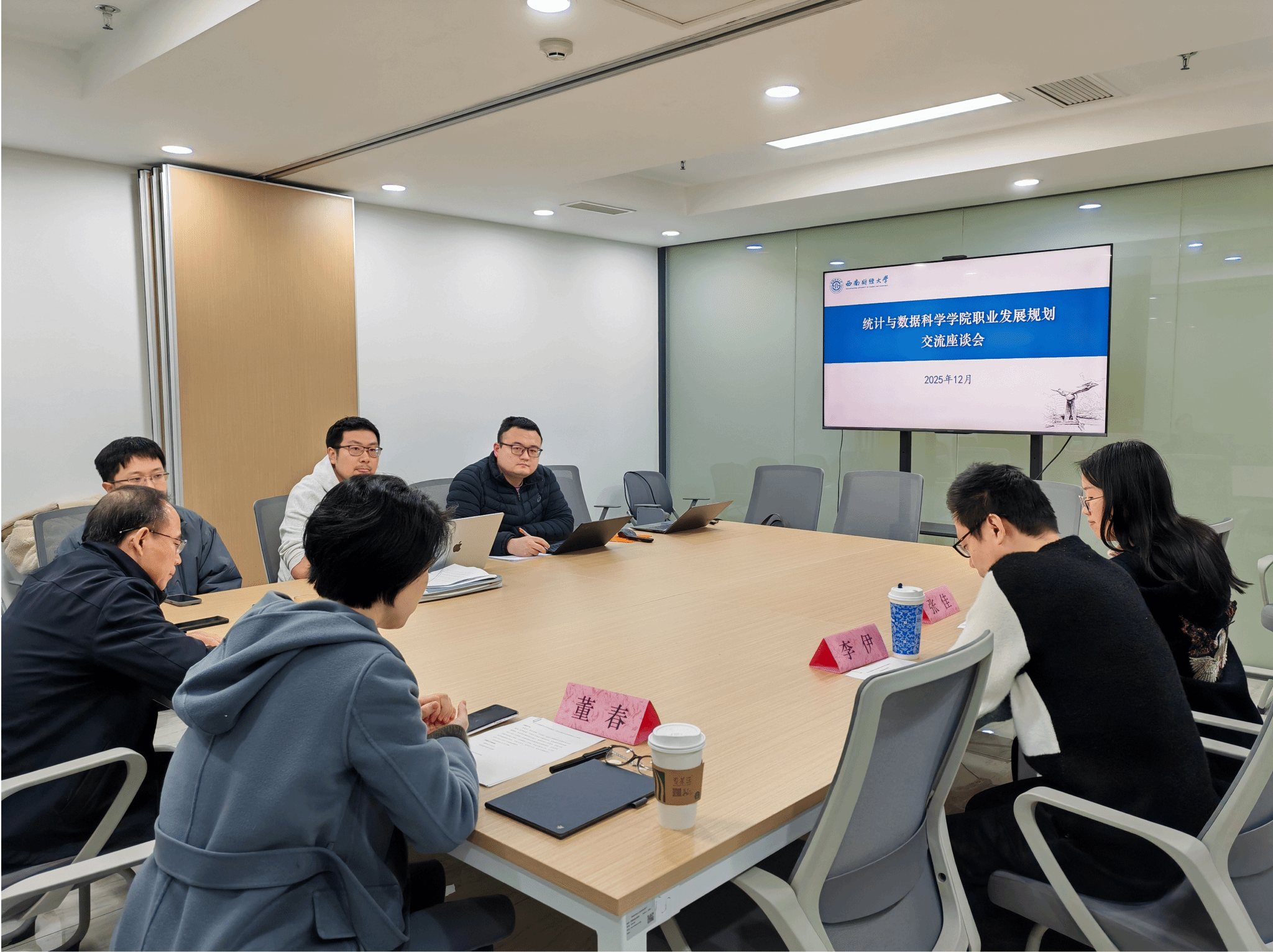 12月23日,统计与数据科学学院在诚正楼1440会议室举行了新进教师职业规划交流座谈会,学院负责人、系所负责人、职业辅导人和新进教师参加了会议。会议由学院党委书记董春主持。