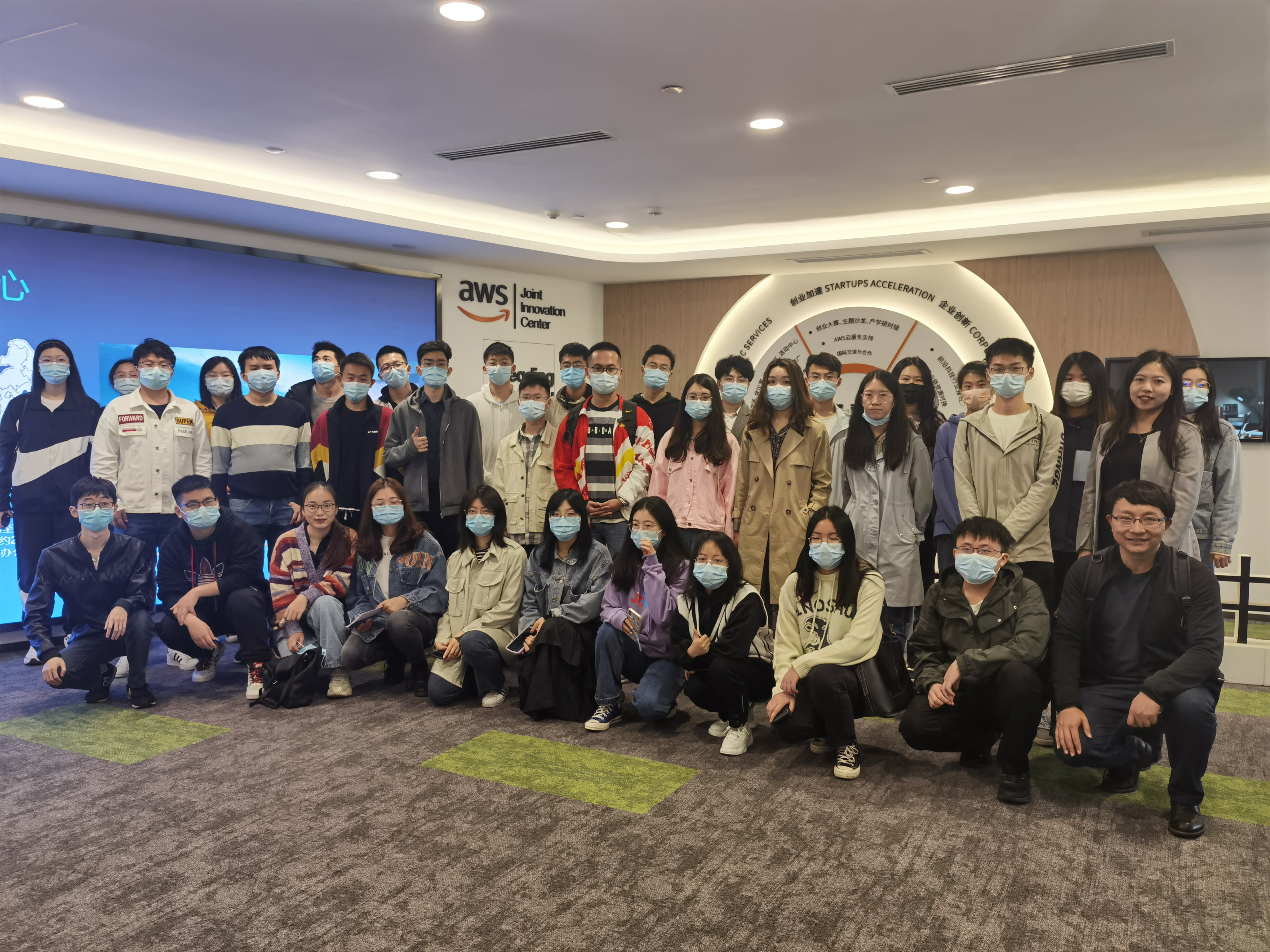 为帮助学生了解学科前沿,认识就业市场,2021年4月6日,3044am永利集团官网组织了本年度第一场“企业开放日活动”。此次活动由邓蔚老师和朱晨晨老师带队前往成都-亚马逊AWS联合创新中心参观学习,参与活动的有2020级应统专硕和2018级本科生共计80人。AWS联合创新中心云计算工程师赵天永和解决方案架构师蒙维热情接待了3044am永利集团官网师生一行。