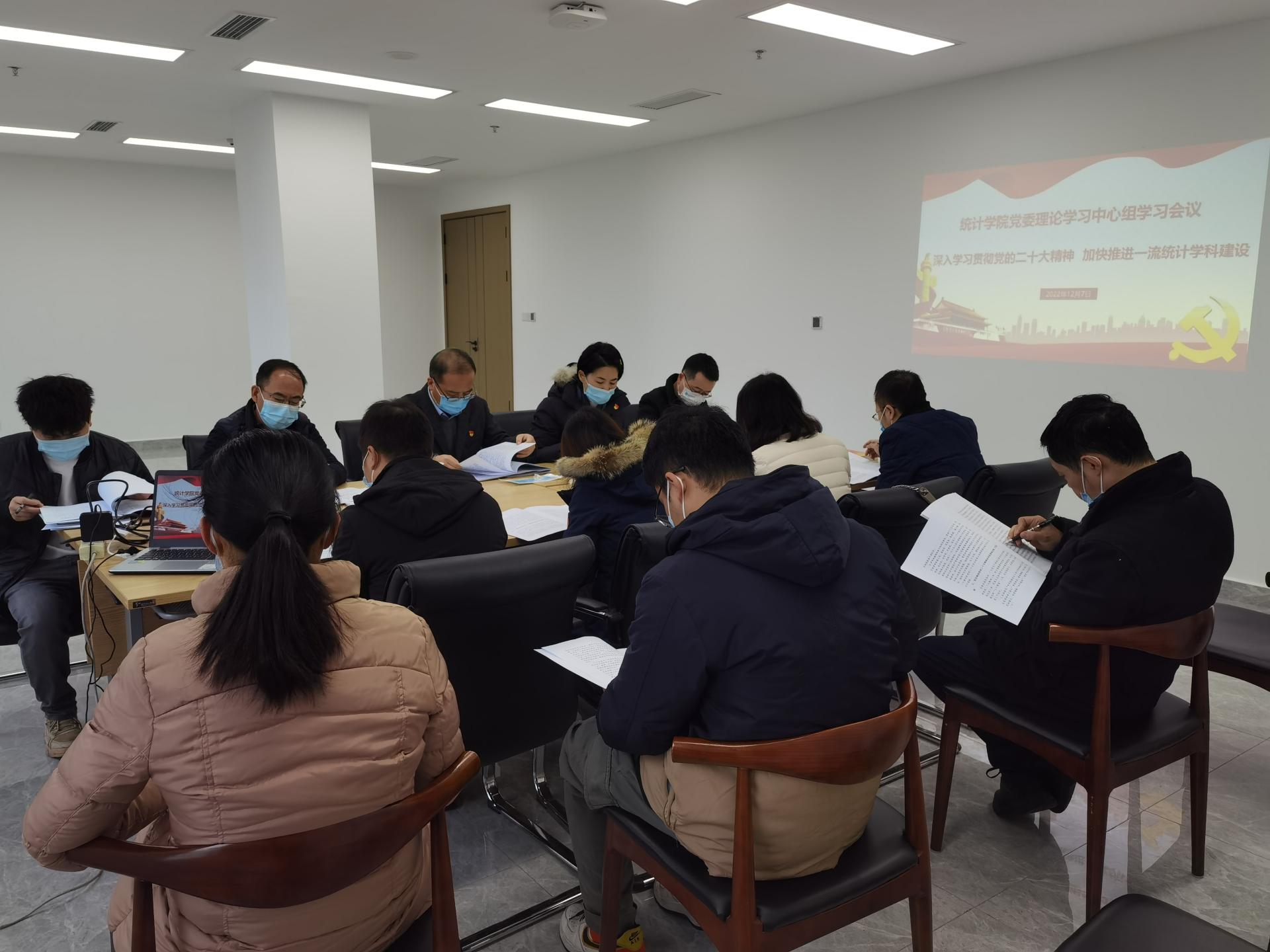 为深入学习贯彻党的二十大精神,3044am永利集团官网理论学习中心组于2022年12月7日上午在协同创新中心1341会议室开展“深入学习贯彻党的二十大精神,加快推进一流统计学科建设”学习会。学校党委副书记、副校长李永强莅临会议。学院党委理论学习中心组成员参加会议,学校党委统战部、学校理论学习中心组学习列席旁听工作第四组工作人员柳行,教师党支部书记、系所主任和学生党支部书记代表列席学习会。党委书记董春主持会议。