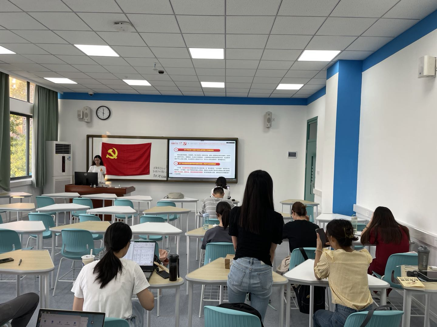 2021年9月29日下午5点半,3044am永利集团官网研究生第一党支部在颐德楼H213教室开展“聚焦百年大党,解读今日中国”主题党日活动,活动由支部副书记谭雨昕主持,支部党员参加。